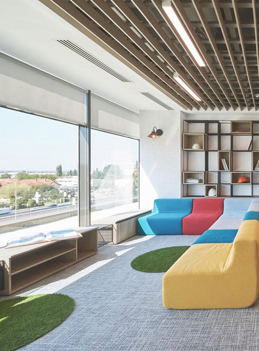 休息区域的设计:设计师在设计的时候,更多强调的是对于自然的开发,在设计师看来自然拥有无以伦比的自愈能力,故此设计师希望让员工可以融入自然,让自然的力量可以在每一个员工心中开花发芽,在休息的同时,不断的修复员工那劳累的心神。