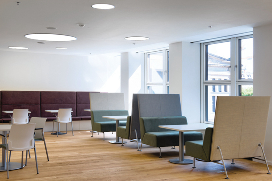 休息区域的设计:在这里员工可以坐在这里,什么都不用想,看看窗外的美景,或陶醉、或发呆、或默默无语、或与人交谈,这也是设计师希望看到的,在这里生活的压力都被阳光所驱散,在这里一切都是如何的透明,让员工在这里可以休养生息。