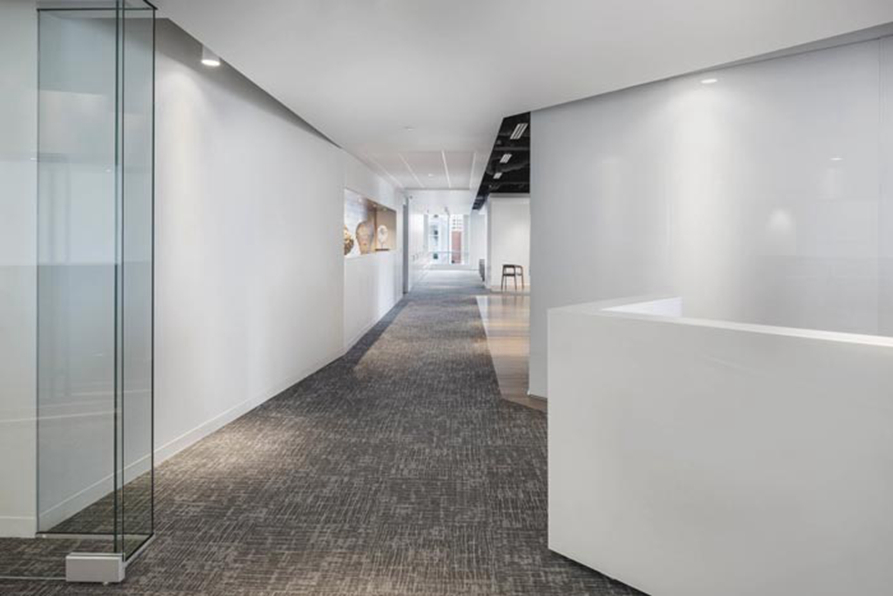 过道的设计:从接待空间通过之后,就进入到空间的内侧区域,此处给人的第一特点就是畅通无阻,这也是设计师希望看到的,若是从细节上看,可以看出每一个转弯的区域都是一个完美的弧度,这样设计的目的就是希望将空间以弧度向前贯通,让空间更加的自然、通畅、优美。