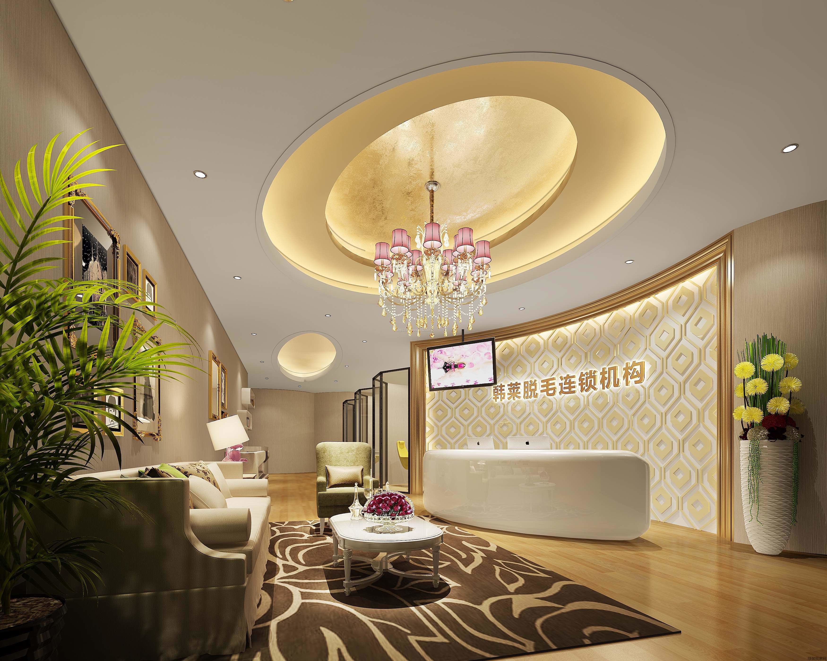 3、美容院设计装修施工的现代简约风格以轻柔色系中心色的粉红色为主。地毯、灯罩、窗帘用红加白色调,家具白色,房间局部点缀淡蓝,以此来增添美容院中浪漫的气氛。