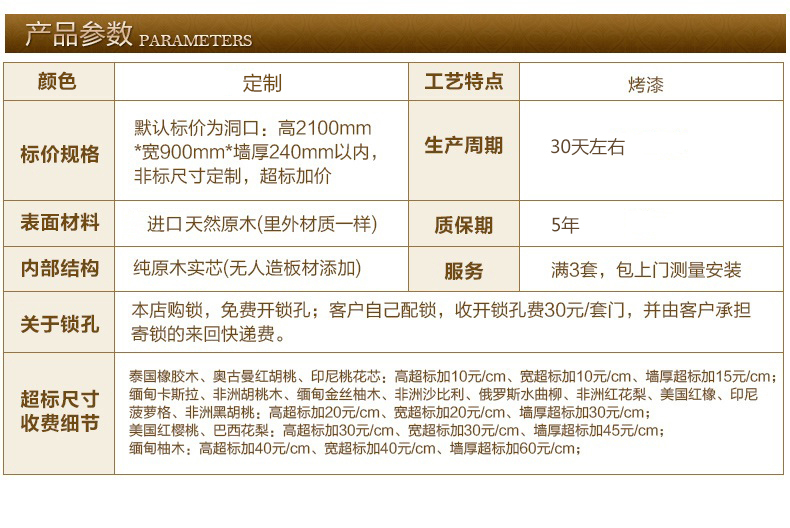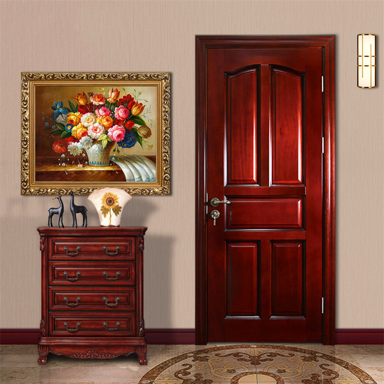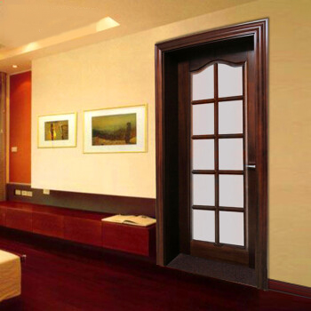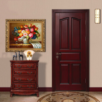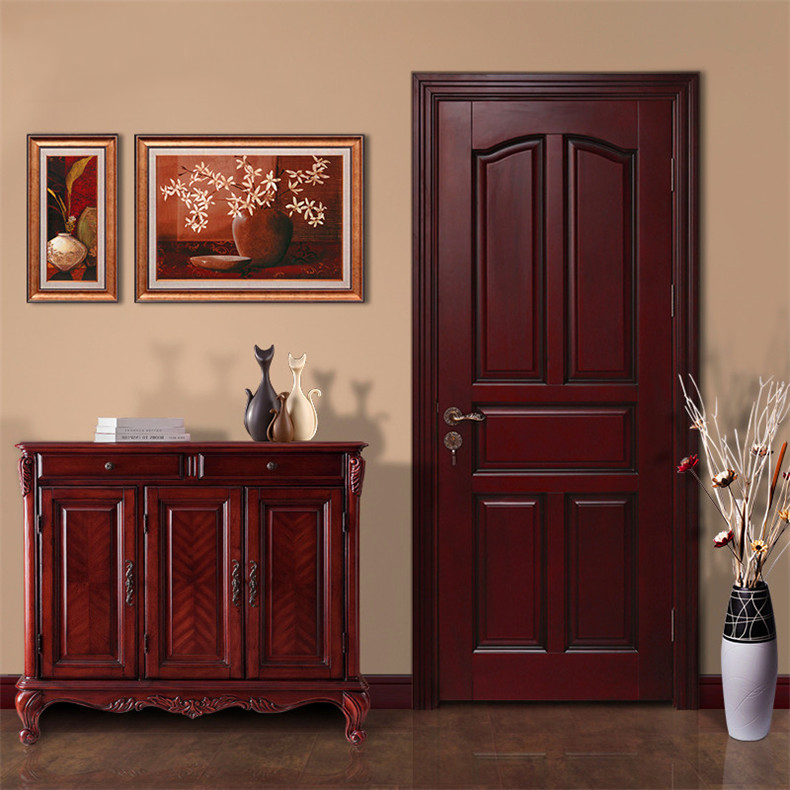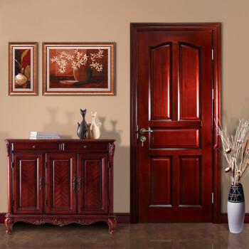 绿装我家木门 柚木色实木门原木门胡桃木红橡红胡桃桃花芯别墅门 Y72 奥古曼红胡桃