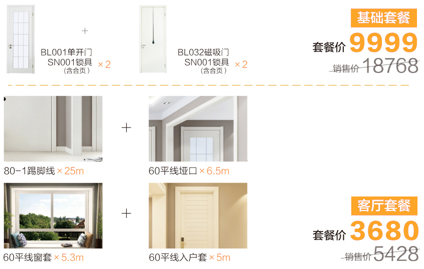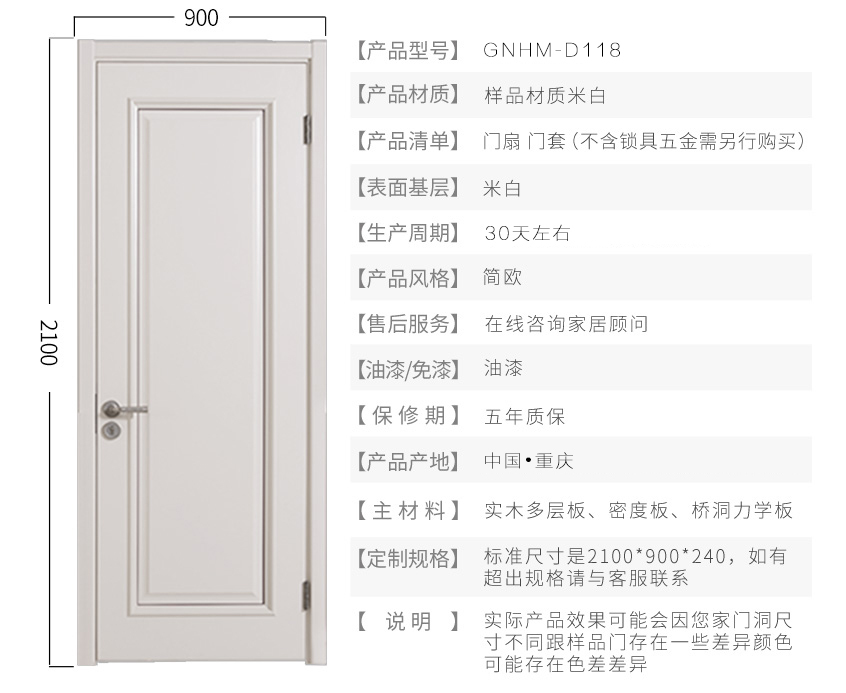 绿装我家木门 小花同款 两居套餐 室内门实木复合油漆门 米白色静音定制木门