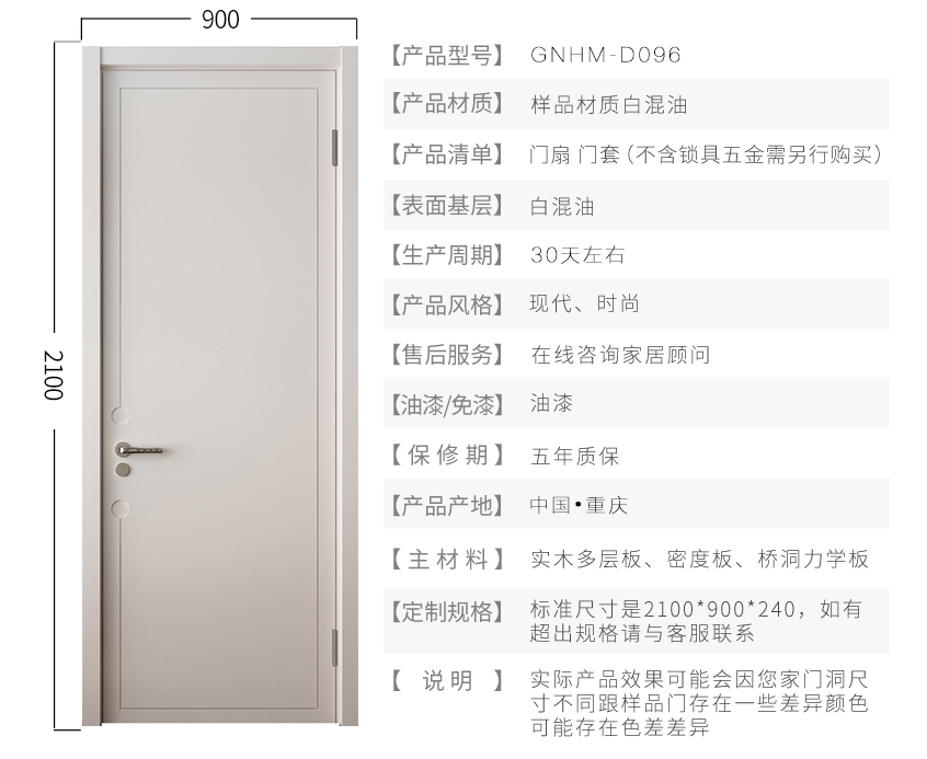 绿装我家木门 时尚室内卧室门 实木复合木门白混油静音门