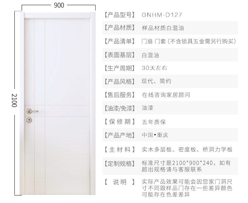 绿装我家木门 静音门室内门 实木复合烤漆木门 白混油