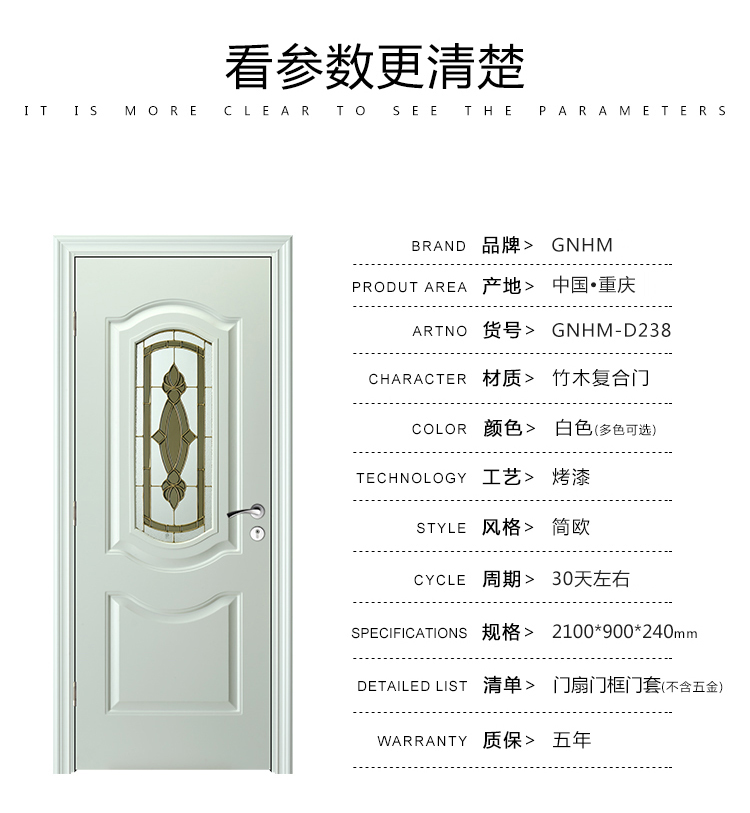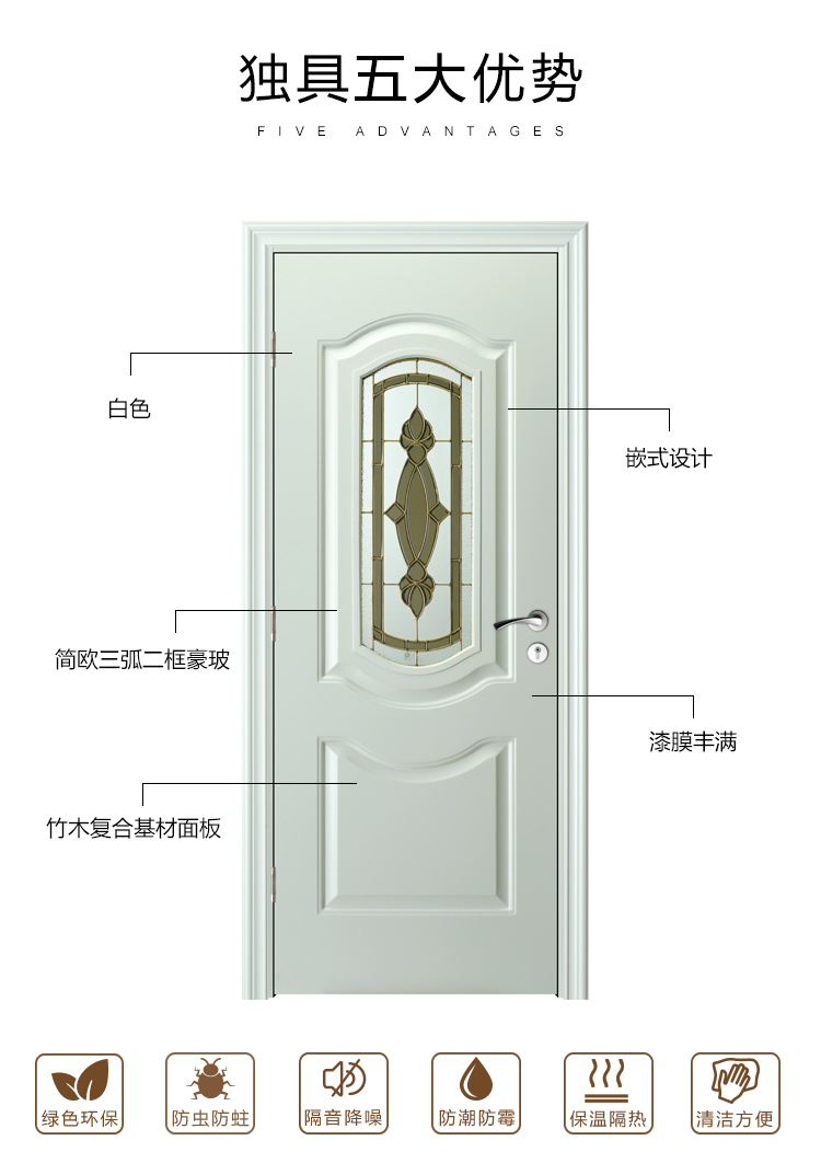 绿装我家木门 烤漆简约卧室套装门厨房卫生间房间实木复合门