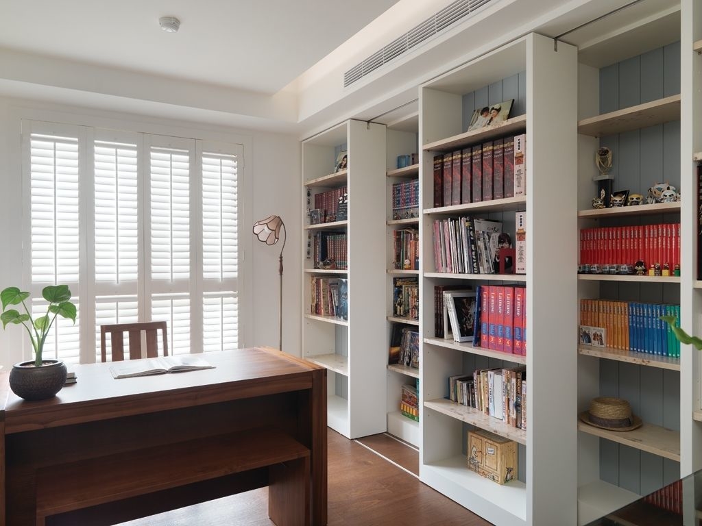 书房颜色一般以浅色为主,如浅绿色、浅蓝色等,这样有利于精心学习。而太复杂的颜色易造成人的精神恍惚,容易困顿,学习和工作起来都费劲。