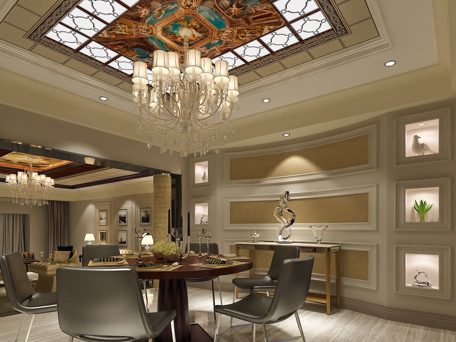 3、铺设管线时要设检修孔。暗架吊顶一定要设检修孔,许多人在家庭装饰中厨卫吊顶一般不设置检修孔,觉得影响美观,殊不知一旦吊顶内管线设备出了故障就无法检查确定是什么部位、什么原因,更无法修复,因此对于铺设管线的吊顶还是设置检修孔为好,可选择在比较隐蔽易检查的部位,并对检修孔进行艺术处理,譬如与灯具或装饰物相结合设置。