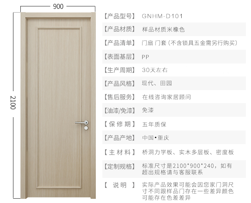 绿装我家木门 典雅成熟室内门套装门 实木复合卧室门免漆定制木门 楸木色