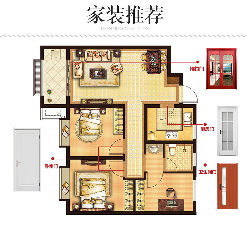 绿装我家木门 全屋定制免漆门室内门卧室门 厨房卫生间门流星雨 免漆门