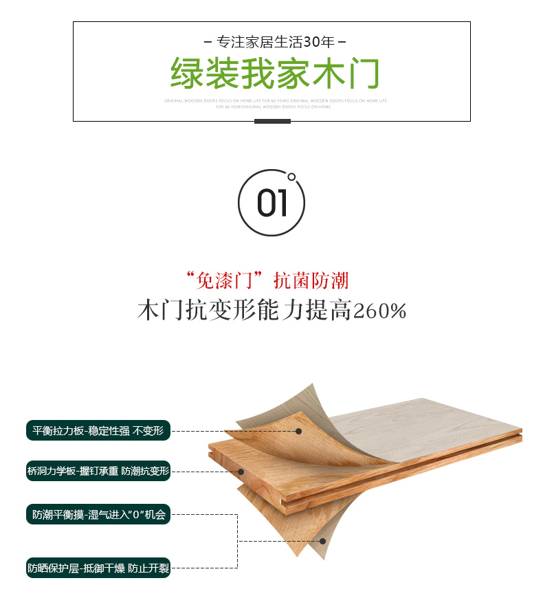 绿装我家木门 全屋定制油漆门实木复合卧室门木门 厨房卫生间室内门 莱茵河畔 油漆门